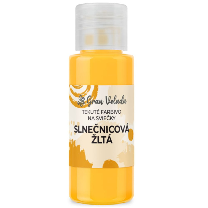 Slnečnicové žlté farbivo do parafínu, už zriedené a pripravené na použitie. Preto sú tekuté farbivá ideálne na farbenie domácich sviečok. Sú k dispozícii v širokej škále odtieňov.