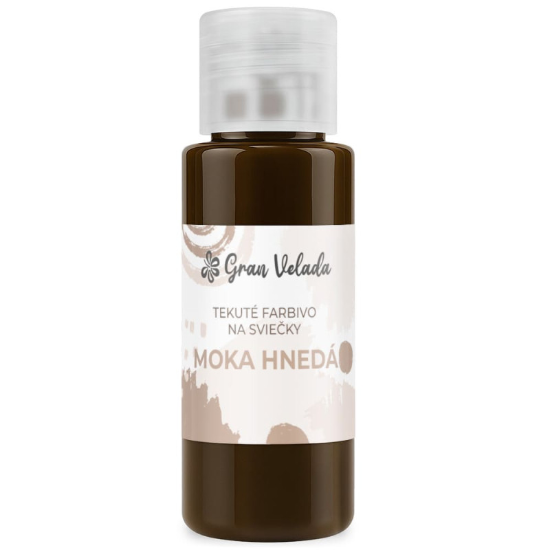 Moka tekuté farbivo na výrobu sviečok v čokoládovo hnedých a tmavohnedých tónoch. Je k dispozícii v rôznych veľkostiach. Tekuté farbivá na sviečky sú pohodlné a praktické, pretože sa veľmi ľahko používajú: stačí pridať niekoľko kvapiek do roztopeného parafínu, aby sa sfarbil. Keďže sú koncentrované, ich použitie je veľmi cenovo výhodné a úsporné. Ľahko sa rozptyľujú a nezanechávajú hrudky.
