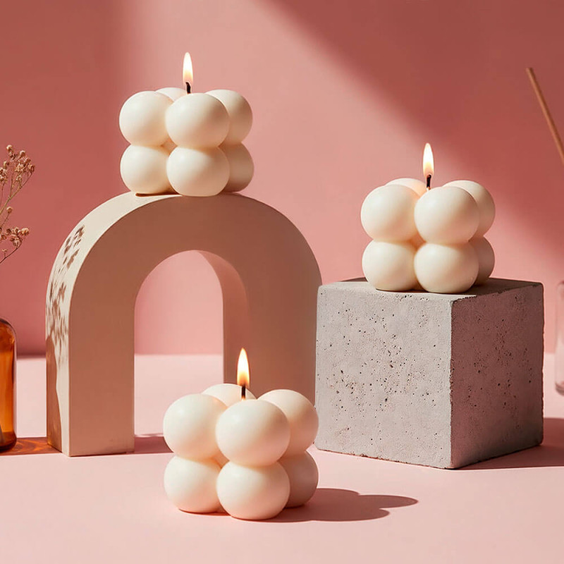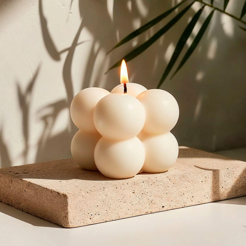 Je vyrobená zo silikónu a je nepriľnavá, pružná a veľmi odolná. Táto forma má tvar kocky a 4 guľôčky alebo bubliny s reliéfom na každej strane. Výroba sviečok s ňou je veľmi jednoduchá. Stačí roztopiť vosk, pridať esenciu a farbivo a premiešať. Do formy navleč knôt a naplň ju. Nechaj zaschnúť a sviečka je pripravená na použitie. Získaš jedinečné výtvory, ktoré môžeš darovať ako darček alebo si nimi ozdobiť svoj domov! Kliknutím na ďalšie podrobnosti sa krok za krokom dozvieš, ako vyrobiť sviečky pomocou tejto formy.