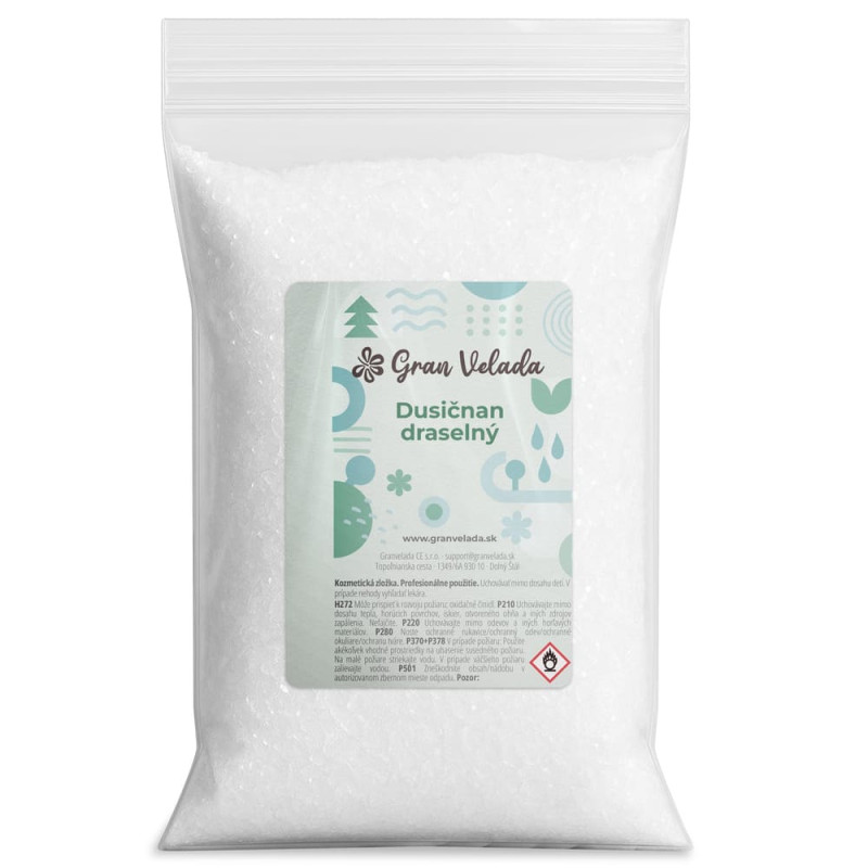 Dusičnan draselný vysokej čistoty, superjemný. Je to biely kryštalický prášok, ktorý sa používa najmä na výrobu kadidla a kadidelníc, pretože pomáha ich lepšiemu horeniu. Používa sa aj pre rastliny, pretože im pomáha lepšie prijímať živiny, zadržiavať vodu a rásť zdravšie a silnejšie. Okrem týchto použití dusičnanu draselného existujú aj priemyselné použitia, napríklad na výrobu zápaliek, pušného prachu a pyrotechniky. Kliknutím sem si môžeš kúpiť dusičnan draselný vo veľkom a v úspornej forme.