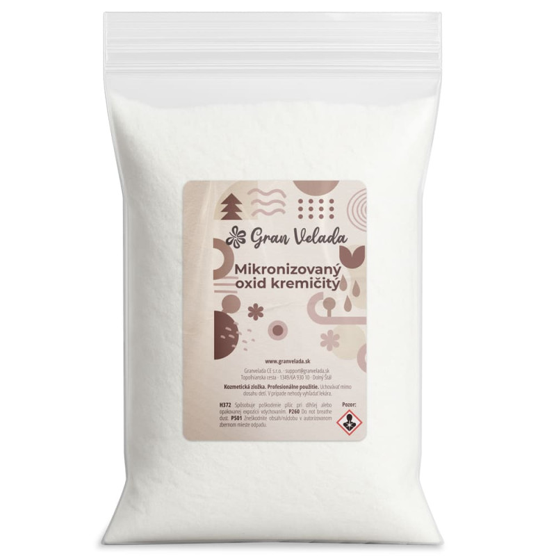 Mikronizovaný oxid kremičitý je minerál tvorený kremíkom a kyslíkom. Nachádza sa v prírode normálne vo forme piesku alebo kremeňa. Spracováva sa v rôznych tvaroch a rôznych veľkostiach: piesok, múka a mikronizovaná, tak ju tu nájdete. Použitie mikronizovaného oxidu kremičitého: keramika, cement, farby, nátery, malty... V Gran Velada si môžete kúpiť mikronizovaný oxid kremičitý v nádobách rôznych veľkostí: od 100 g do 5 kg. Je to biely prášok, ktorý môžete použiť na výrobu farieb, plastov a gumy.