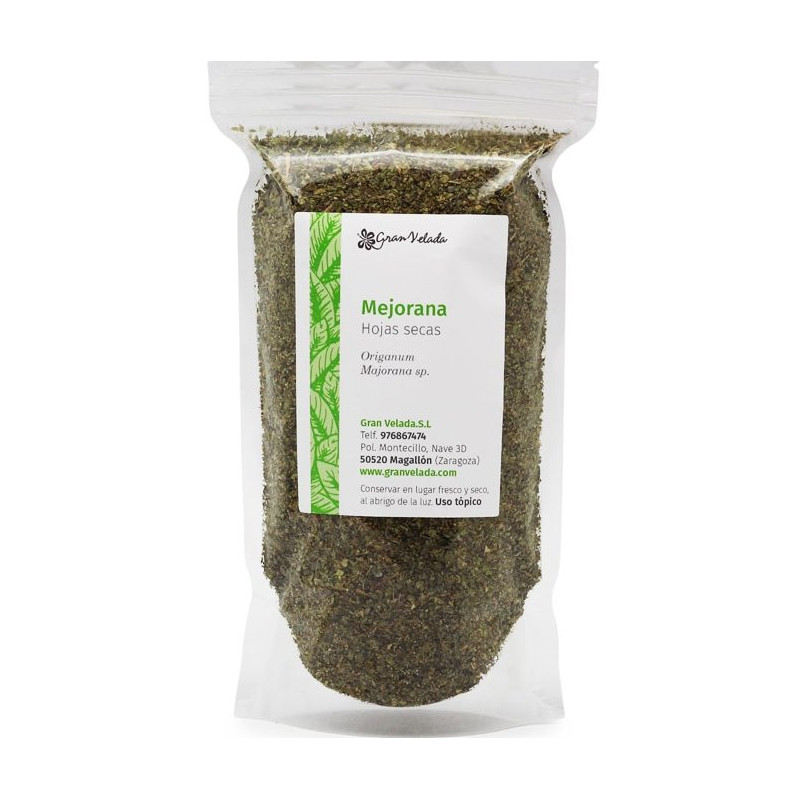 Sušené majoránkové listy na vonkajšie použitie. V Gran Velada si môžete kúpiť suchý majorán online prostredníctvom jeho webovej stránky. Je to aromatická rastlina, ktorá sa predáva dehydrovaná a rezaná. Majoránka má veľmi dôležité antiseptické a antibakteriálne vlastnosti , preto je užitočné prirodzene dezinfikovať rany. Listy majoránky v kozmetike sa používajú ako pre svoje vlastnosti, tak aj pre svoju príjemnú arómu. So sušenými listami tejto rastliny môžete robiť tinktúry, odvar alebo macerácie, ktoré sa majú začleniť do kozmetiky a prírodných mydiel. Predaj iba koncovému zákazníkovi.