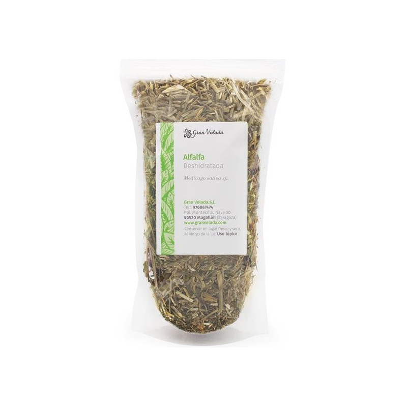 Dehydrovaná lucerna na obohatenie vašej prírodnej kozmetiky. Táto rastlina je bohatá na živiny, takže lucerna má priaznivé vlastnosti pre pokožku a vlasy. V prípade pokožky pomáha eliminovať toxíny a hydratovať ju. Medzitým sa na liečbu vypadávania vlasov odporúča lucerna na vlasy. Macerovanie tejto rastliny získa ideálny extrakt, napríklad na výrobu domáceho šampónu proti vypadávaniu vlasov. Môžete tiež použiť extrakt z lucerny na naplnenie krémov alebo masiek vlastnosťami. V Gran Velada si môžete kúpiť dehydrovanú lucernu v nádobách rôznych formátov.