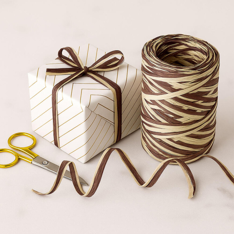Prírodná hnedá dvojfarebná rafiová stuha, ktorá ozdobí a prispôsobí vaše darčeky, podrobnosti o hosťoch, ručne vyrobené spracovanie, kvetinárstvo a všetko, čo si dokážete predstaviť. Rafiová stuha v dvoch farbách, hnedej a prírodnej, je ideálna na výrobu lukov a zdobenie obalov vašich výtvorov a detailov hostí rustikálnym, jednoduchým a originálnym vzduchom. Z Gran Velady sme vám dali k dispozícii dvojfarebnú stuhu hnedo-prírodnej rafie v rolkách rôznych veľkostí: 10, 200 alebo 400 metrov. Musíte si len vybrať dĺžku, ktorá najlepšie vyhovuje vašim potrebám a spracovať nákup. S prírodno-hnedou rafiovou páskou dodáte každému vášmu obalu nádych kvality, profesionality a predovšetkým originality.