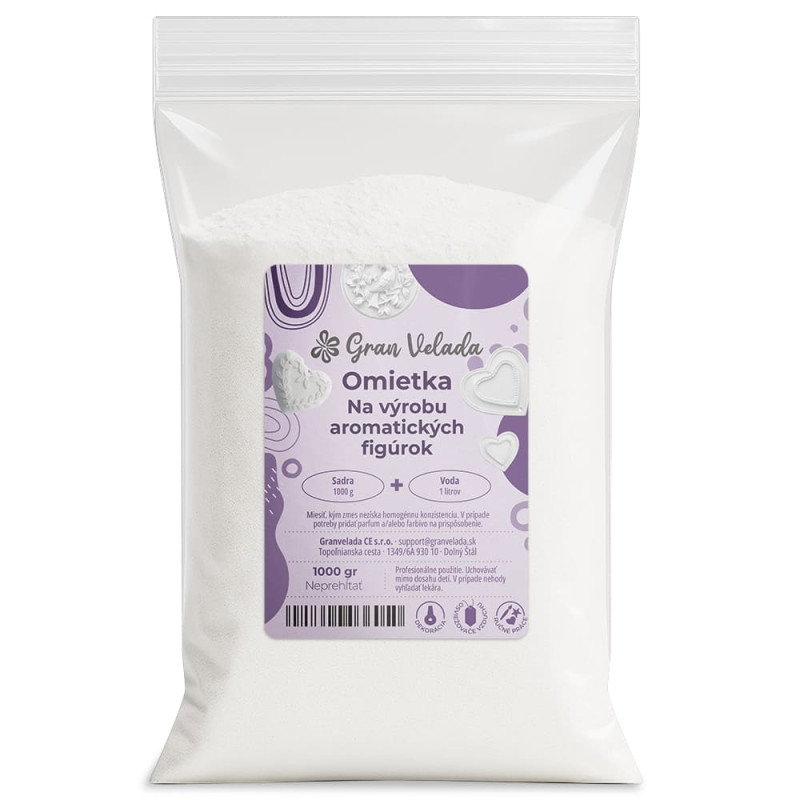 Predaj sadrového prášku. Je biela, jemná a s vysokou absorpčnou silou aromatických esencií. Preto je táto omietka ideálna na výrobu vonnej keramiky, osviežovačov vzduchu, magnetov na chladničku, ozdobných figúrok, nádob na sviečky... Omietka pre remeslá sa používa na 50%, to znamená, že musíte zmiešať rovnaké množstvo vody ako sadrový prášok. Na jeho farbenie môžete použiť pigmenty Gran Velada. Akonáhle je cesto hotové, stačí naliať do formy. Je vhodné dať niekoľko jemných klepnutí na dosku, aby sa zabránilo bublinám. Nechá sa dobre vyschnúť a neformovať. Ak chcete parfumovať figúrky, musíte urobiť zmes alkoholu 96 ° a aromatickej esencie (70/30), nechať macerovať 2 dni a postriekať omietku touto zmesou. Kliknite sem a kúpte si ho veľkoobchodne v sporiacom formáte.