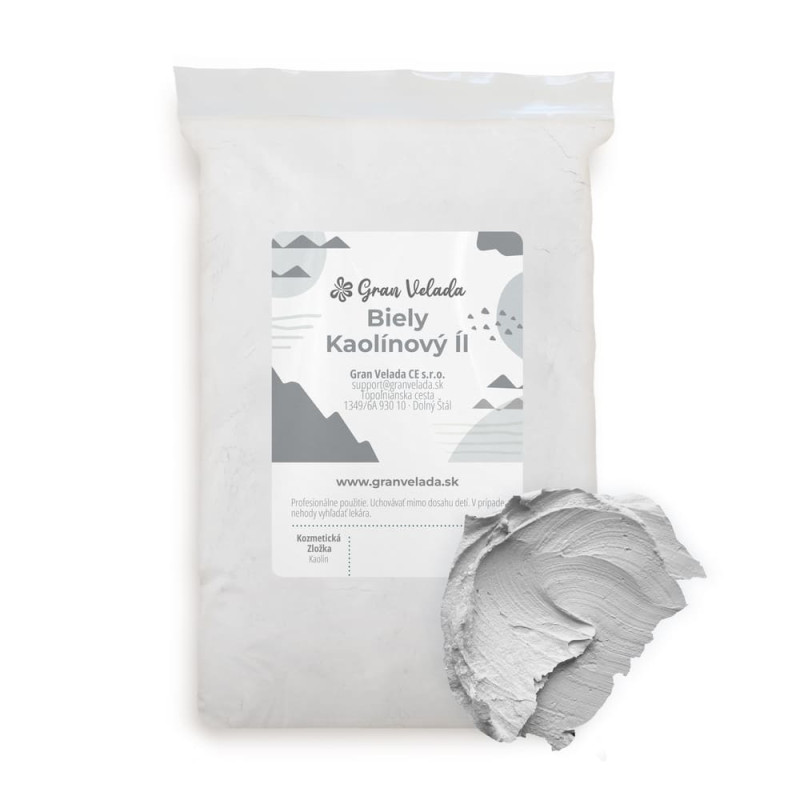 V Gran Velade si môžeš kúpiť kaolínový biely íl na výrobu masiek, peelingov, mydiel... Je to prírodná zložka plná prospešných účinkov, ideálna na ošetrenie normálnej, citlivej alebo suchej pokožky. Zoznam vlastností bieleho ílu zahŕňa omladzujúce, remineralizačné a upokojujúce vlastnosti. Okrem toho je kaolínový biely íl dokonalým regenerátorom buniek, ktorý dokáže detoxikovať a dekongestovať pokožku a zároveň na ňu pôsobí vypínajúco. Môžeš si z neho vyrobiť masku z bieleho ílu a využiť tak všetky jeho výhody. Ak si chceš kúpiť biely íl vo veľkoobchodnom predaji v úspornom balení, klikni sem.