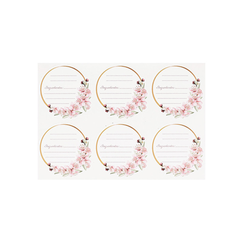 Blister so 6 okrúhlymi nálepkami, 5,1 cm, na vrch napíšte názov a zložky produktu, ktorý ste si vyrobili doma. Majú pekný kvetinový dizajn a sú špeciálne navrhnuté tak, aby ste o nich mohli písať. Sú veľmi užitočné pri výrobe domácich kozmetických výrobkov, džemov alebo iných druhov konzerv. Naše samolepky vynikajú svojou odolnosťou a kvalitou. Perfektne priľnú na rôznych typoch povrchov (lepenka, papier, plast, sklo, hliník...) a sú vodeodolné. Získajte tieto nálepky a získajte perfektné balenie pre svoje svojpomocné spracovanie.
