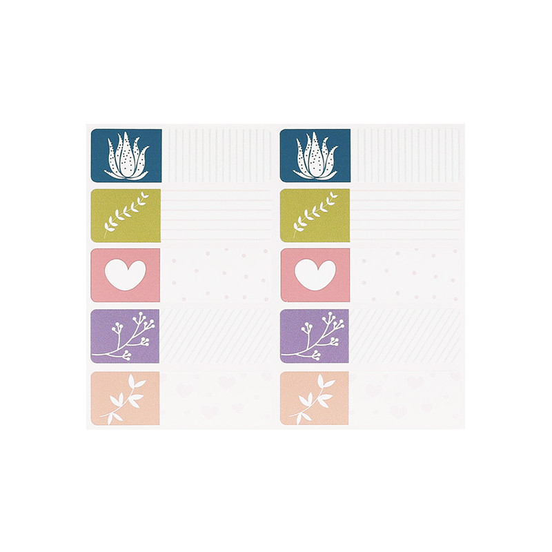 Blister s 10 nálepkami s kresbami, 5,9x1,8 cm, aby ste mohli písať, čo chcete. Samolepky sú obdĺžnikové a sú vyrazené krásnymi kresbami v rôznych farbách. Každý blister kombinuje rôzne modely. Sú špeciálne navrhnuté tak, aby ste o nich mohli písať a sú veľmi užitočné pri výrobe detailov, darčekov, domácich výrobkov, džemov alebo iných druhov zaváranín. Naše samolepky vynikajú svojou odolnosťou a kvalitou. Perfektne priľnú na rôznych typoch povrchov (lepenka, papier, plast, sklo, hliník...) a sú vodeodolné. Získajte tieto nálepky a získajte perfektné balenie pre svoje svojpomocné spracovanie.