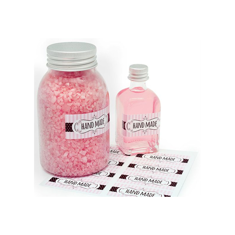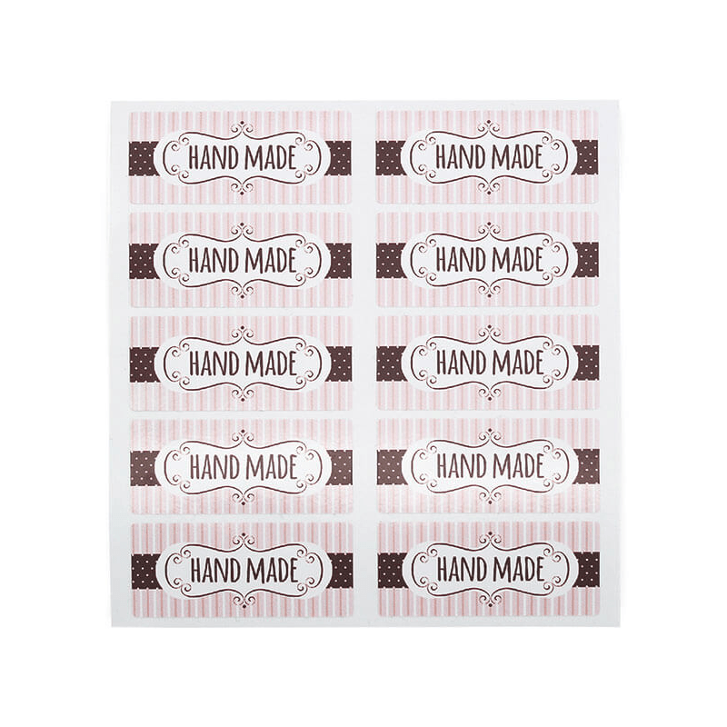Blister s 10 vintage samolepkami s textom "Hand made", 5x2.2cm, ideálny pre balenie detailov, ktoré si vyrobíte doma. Týmto spôsobom bude príjemca vedieť, že ide o ručne vyrobený darček. V týchto samolepkách prevládajú ružové a hnedé tóny a sú vintage štýlom. Majú koketný a elegantný dizajn. Na výber sú k dispozícii na priehľadnom pozadí alebo bielom pozadí. Nálepky , ktoré si môžete kúpiť v Gran Velada, vynikajú svojou odolnosťou a kvalitou. Perfektne priľnú na rôznych typoch povrchov (lepenka, papier, plast, sklo, hliník...) a sú vodeodolné. Získajte tieto ručne vyrobené nálepky a získajte perfektné balenie pre svoje detaily!