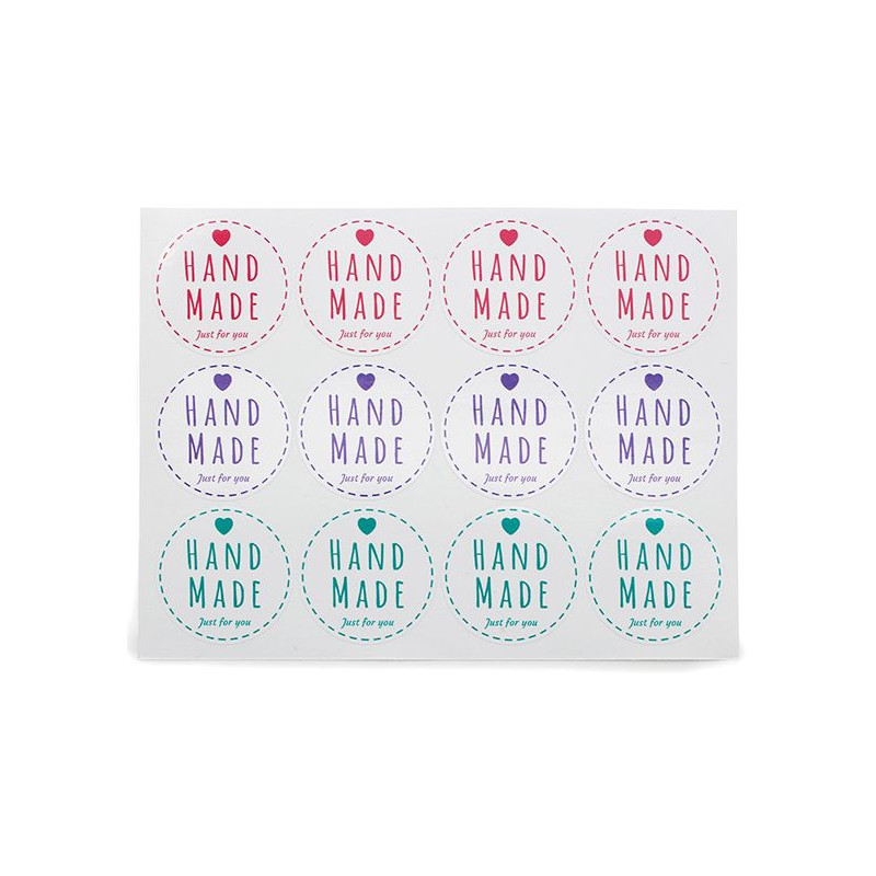 Blister z 12 farebných ručne vyrobených nálepiek, 3,4 cm, na ozdobenie nádob alebo darčekov. Blistrové balenie obsahuje 4 červené, 4 fialové a 4 zelené nálepky. Môžete ich použiť ako nálepky na balenie tašiek, pohárov, darčekových krabíc, obálok, mydiel, kozmetiky, sviečok ... a všetkého, na čo si spomeniete! Nálepky, ktoré si môžete kúpiť v Gran Velada, vynikajú svojou odolnosťou a kvalitou. Perfektne priľnú na rôznych typoch povrchov (lepenka, papier, plast, sklo, hliník...) a sú vodeodolné. Získajte tieto nálepky a získajte perfektné balenie pre svoje DIY spracovanie!