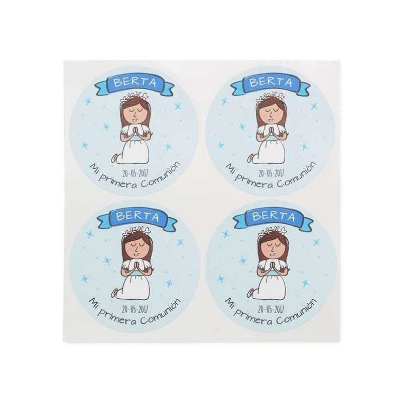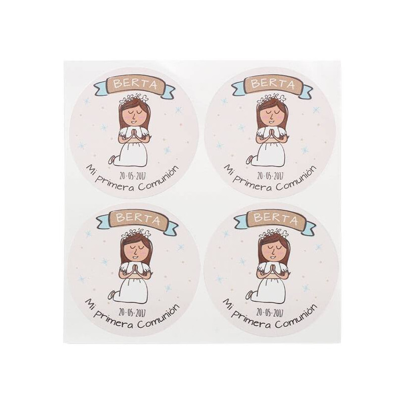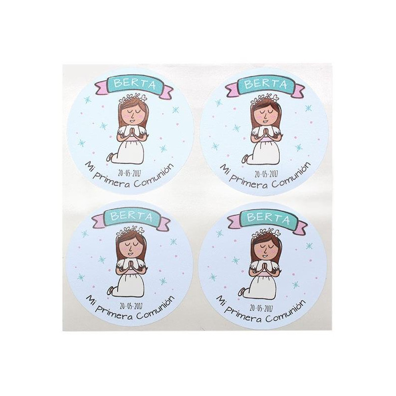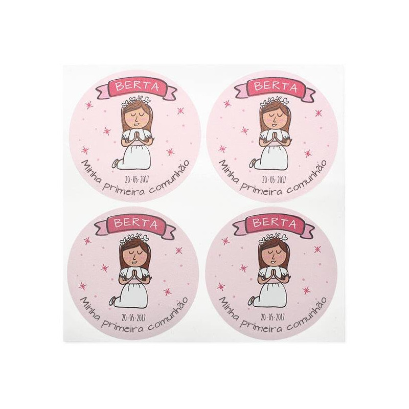 Personalizované okrúhle nálepky na sväté prijímanie - dievča