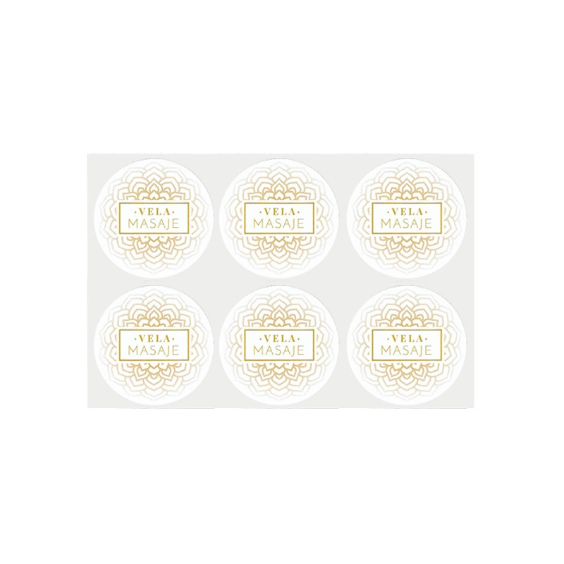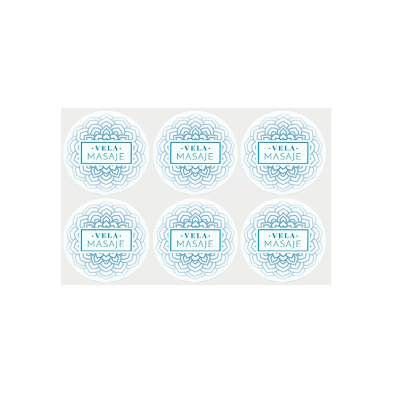 Blistre so 6 okrúhlymi nálepkami s priemerom 5,3 cm na ozdobenie masážnych sviečok, ktoré si vyrobíš doma. K dispozícii v rôznych farbách. Na všetkých je napísané "masážna sviečka" a sú zdobené krásnou orientálnou potlačou mandaly. Ide o pútavý a elegantný dizajn, ktorý dodá dokonalý vzhľad tvojim DIY výtvorom. Dajú sa exkluzívne len v našom internetovom obchode zakúpiť. Nálepky, ktoré si môžeš kúpiť v Gran Velada, vynikajú svojou odolnosťou a kvalitou. Dokonale držia na všetkých druhoch povrchov (kartón, papier, plast, sklo, hliník...) a sú odolné voči vode. Kúp si tieto samolepky a získaj dokonalý obal pre tvoje DIY krémy!