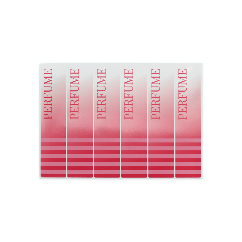 Blister so 6 samolepkami, 3,1x13,9 cm, na výber v troch farbách: ružovej, zelenej a fialovej. Sú ideálne na balenie tvojich domácich parfumov. Sú to obdĺžnikové nálepky podlhovastého formátu, vytlačené na priehľadnom vinyle a dostupné na výber v troch farbách. Majú pekný gradient a je na nich napísané „parfum“. Tieto nálepky sú ideálne na zdobenie flakónov na parfumy, ktoré si tiež môžeš kúpiť v Gran Velada. Naše nálepky vynikajú svojou pevnosťou a kvalitou. Dokonale držia na všetkých druhoch povrchov (kartón, papier, plast, sklo, hliník...) a sú odolné voči vode. Kúp si tieto samolepky a získaj dokonalý obal pre tvoje diy parfumy!