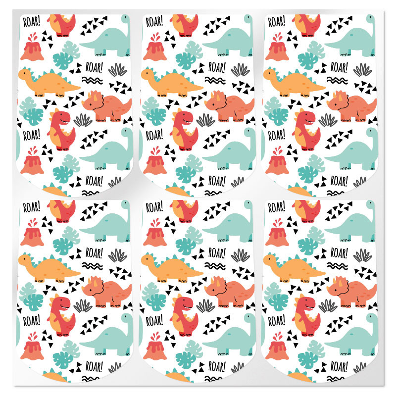 Nálepky s dinosaurami, na výber v dvoch veľkostiach. Sú ideálne na zdobenie nádob s karabínou na zavesenie. Perfektná kombinácia! Samolepky majú ružové pozadie s farebnou bodkovanou potlačou a zdobí ich zábavná hippie lama. Pomôžu ti získať perfektné balenie pre tvoje remeselné výtvory. Nálepky, ktoré si môžeš kúpiť v Gran Velada, vynikajú svojou odolnosťou a kvalitou. Perfektne priľnú na mnohých povrchoch (lepenka, papier, plast, sklo, hliník ...) a sú odolné voči vode. Veľký model obsahuje 6 nálepiek a malý model 8.