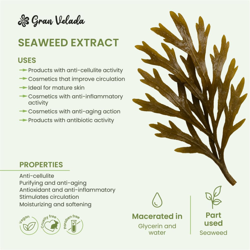 V Gran Velada si môžete kúpiť extrakt z morských rias, vo vode rozpustný extrakt bez parabénov, ktorý sa získava macerovaním rias vo vode a glycerínu v rovnakých častiach. Vyrába sa hlavne z fukusových rias získaných z Atlantiku. Keďže je rozpustný vo vode, môžete ho pohodlne začleniť do kozmetických prípravkov s vodnou fázou.