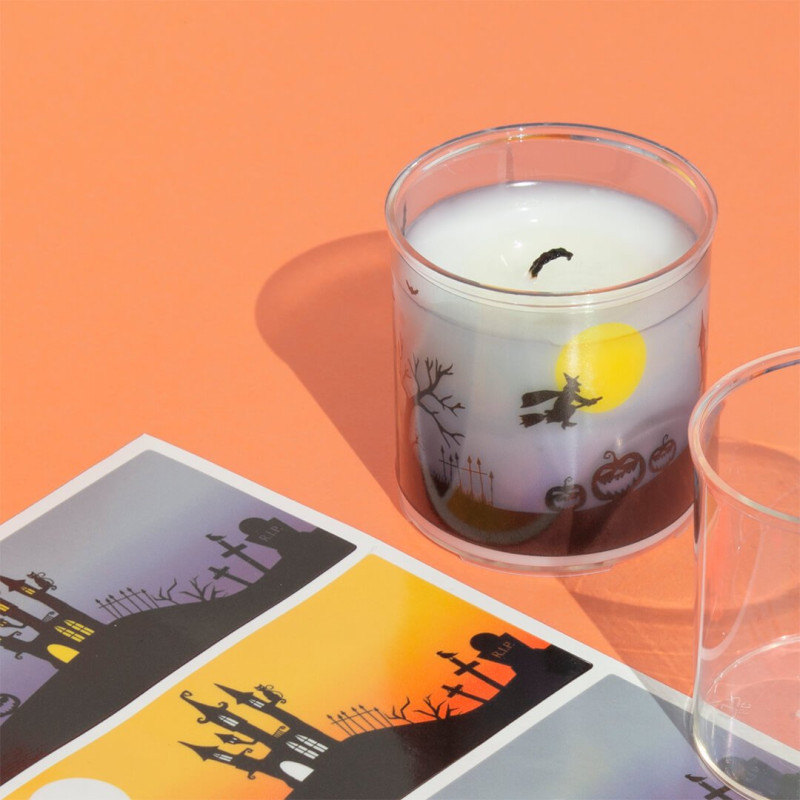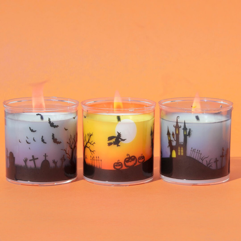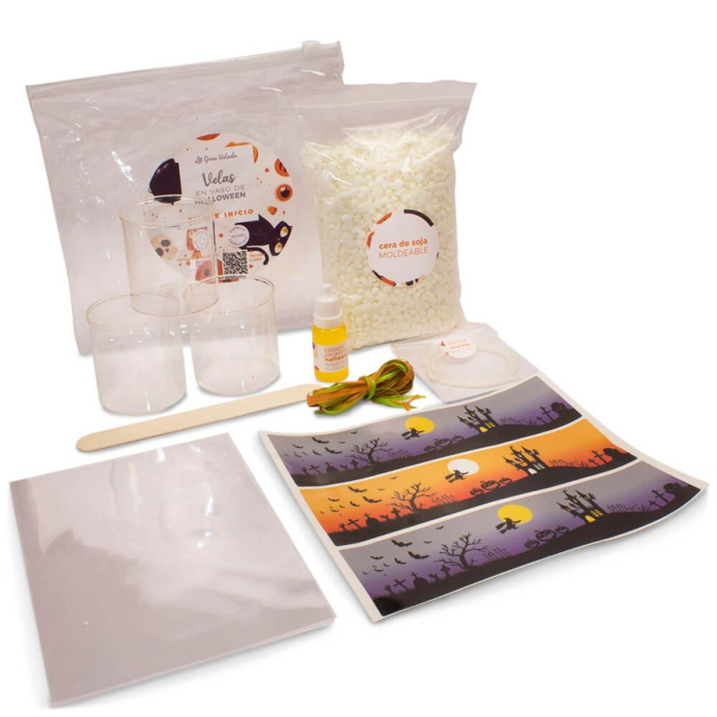 Súprava na výrobu halloweenských sviečok v pohároch. Vytvorte si 3 halloweenské sviečky jednoducho doma! S touto súpravou od Gran Velada si môžete vyrobiť 3 domáce sviečky v ozdobných pohároch a osláviť tak Halloween originálnym spôsobom. Stačí postupovať podľa návodu a za chvíľu budete mať Halloweenske sviečky pripravené na výzdobu vášho domova alebo na darovanie. Je to jednoduché halloweenske remeslo, ktoré vám umožní užiť si kutilstvo zábavným spôsobom! Výsledkom budú personalizované sviečky, ktoré dodajú vašej výzdobe na najtajomnejšiu noc v roku desivý nádych.