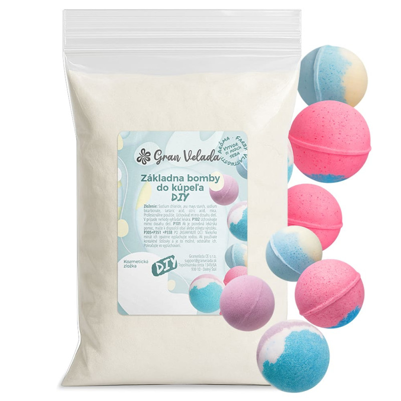 Veľmi lacný základ na výrobu domácich kúpeľových bômb. Využi úsporný balíček s veľkými zľavami! Základ na bomby do kúpeľa je prášková zmes, ktorú ti Gran Velada ponúka na jednoduchú a úspornú výrobu domácich bômb do kúpeľa. Tento základ je hlavnou zložkou receptu na domáce bomby do kúpeľa. Čo ešte potrebuješ? 120 g hamamelisovej vody, 3 g vonnej esencie, niekoľko kvapiek farbiva na bomby do kúpeľa podľa fantázie (vypočítané na základe hmotnosti vody) a formu. Tu je návod krok za krokom, ako vyrobiť domáce bomby do kúpeľa s použitím tejto základnej ingrediencie - uvidíš, aké je to jednoduché! Na veľkoobchodné výrobky sa nevzťahuje akcia na bezplatnú dopravu. Veľkoobchodné výrobky môžu mať oneskorené dodanie.